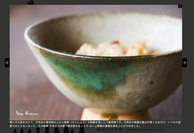 なんてったって今までの庚申窯のHPでは焼き物の紹介に写真1枚と説明文が2行くらいしか入れられなかったから↓ うつわについて全然書けなかったんですよね。もう随分前に作ってもらったサイトだったからスマートフォンにも対応してなかったし。