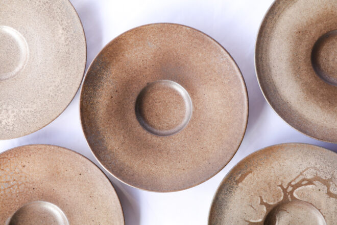 今回のマンガン結晶釉の色というと、こげ茶色と明るい茶色の入り混じったややマットなお皿って感じでしょうか。釉薬の色を表現するのは難しいですね。