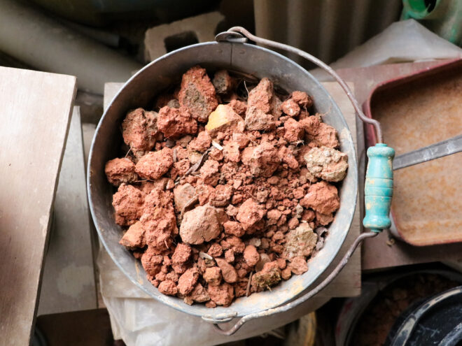 混ぜるときのボールミルの大きさや一回で作る量、混ぜ合わせる時間なんかでも すり潰された粒子の形が変わって釉薬の発色が変化するっていうことらしいですから、作る人が変われば出来上がるものも全然違う作品になりそうですね。
