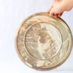 通常 練り込みをやると土の模様が大理石、マーブルカラーみたいになるのですが、このお皿では中間色の粘土を1色入れているため、土の色のコントラストが抑えられて、大理石というよりは木目のようなイメージになっております。