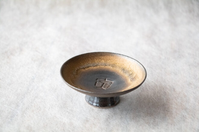 今年の寅さかずきでは、タイガーカラーの黄色と黒を模して、金色と黒の出る金ラスターを採用いたしました。