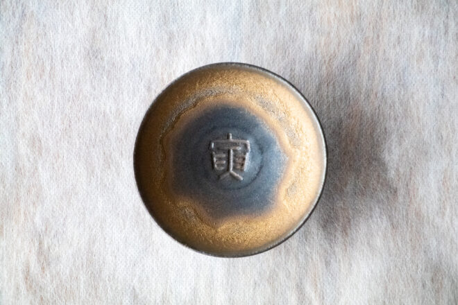 今年の寅さかずきでは、タイガーカラーの黄色と黒を模して、金色と黒の出る金ラスターを採用いたしました。