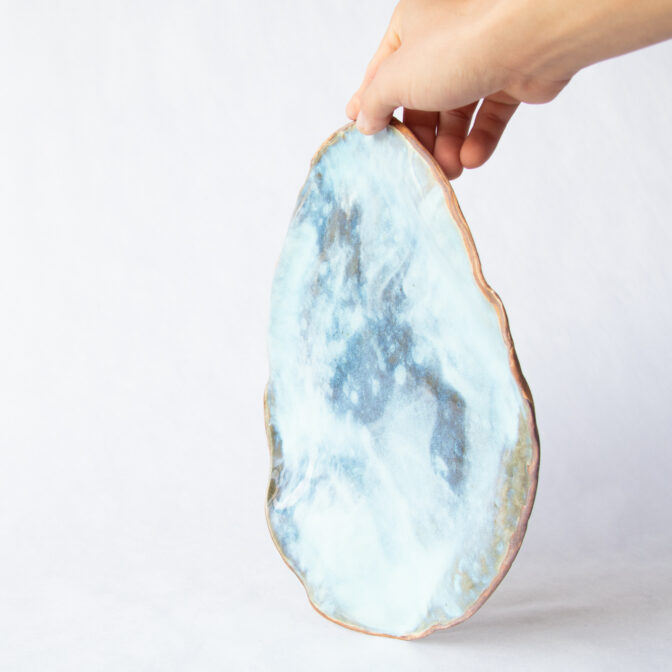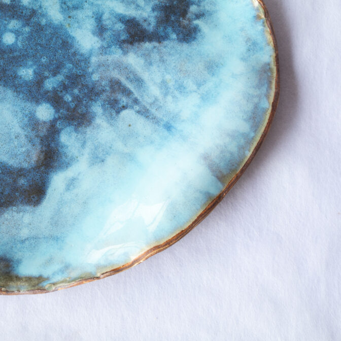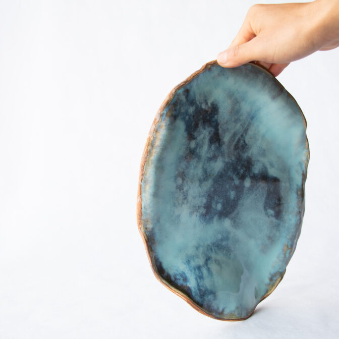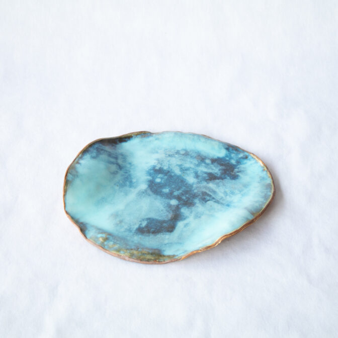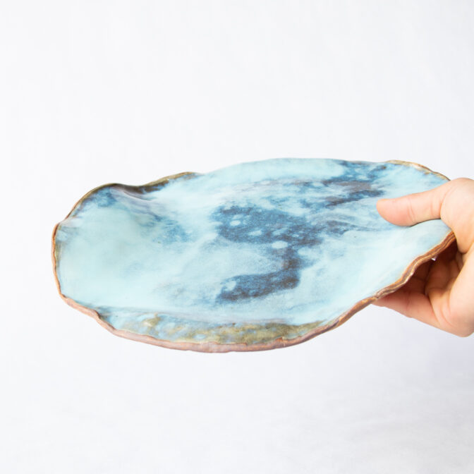 これはミナモ(水面)というお皿で、水面のような風景をお皿にしたいと思って作ったものなんですけど、元はフルオーダーで依頼されたものになります。
