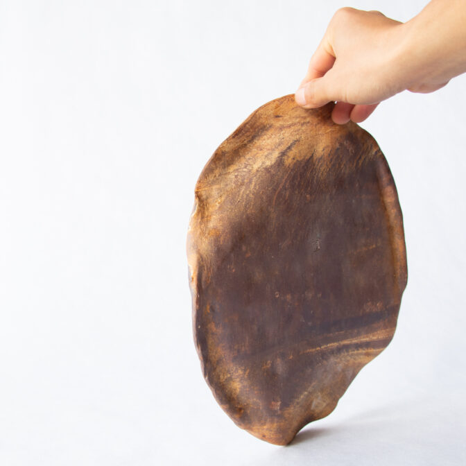 一番最初は「お皿自体に高低差や凹凸があって、形も整ってないオーガニックなもので、そんな感じで 後はお任せで」ということで できたお皿です。