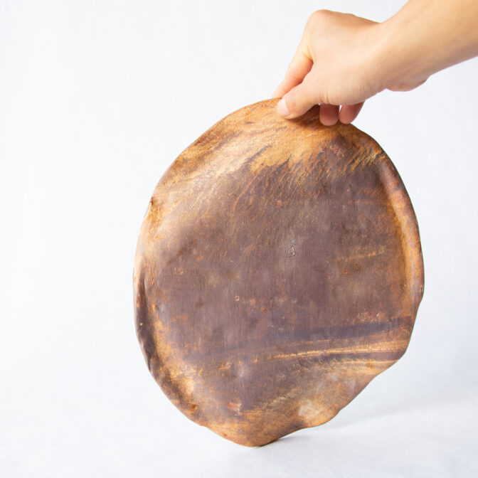 またお皿のフチは釉薬をかけずに練り込みの土の層を見せる作りになっています。フチだけ色を変えることでお皿全体の印象を引き締める効果があると思います。