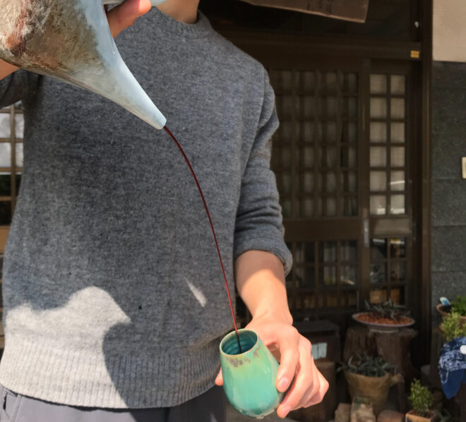 ていうのも細い注ぎ口から高低差をつけてグラスにワインを注ぐと、空気にめちゃくちゃ触れるためデキャンタージュの時間が短縮されて、渋みの強いワインなどは味わいがまろやかに、酸化して香りもよくなる、という仕組みらしいです。詳しくはわからないんですけども。でも実際に飲み比べてみると確かに味が変化していることがわかります。端的にいうと美味しくなります。