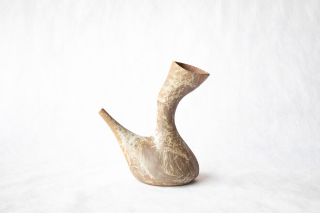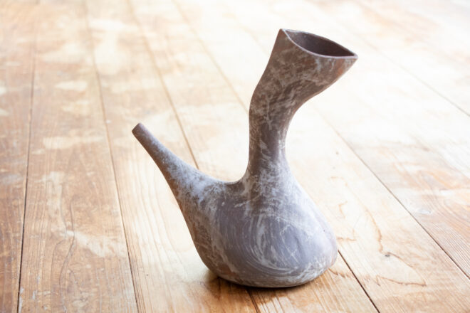 こちらはスペインのデキャンタ[ポロン]を陶器でできないか、ということで作った器です。