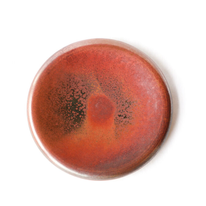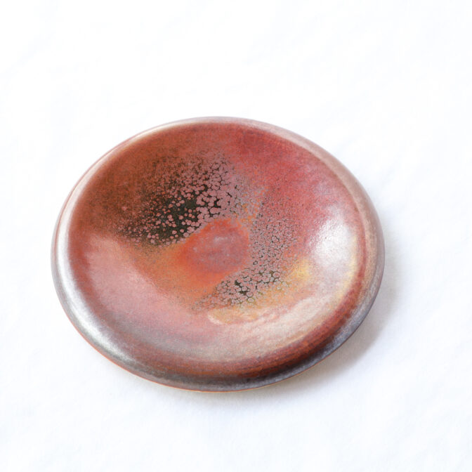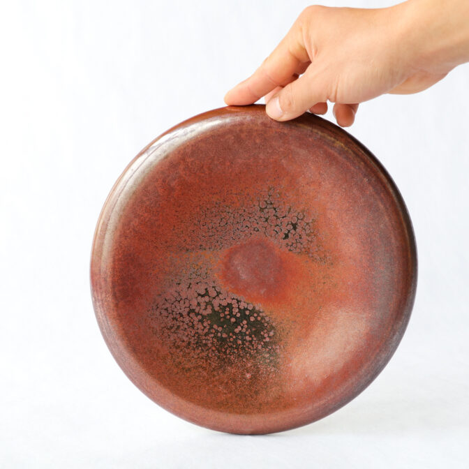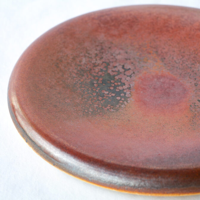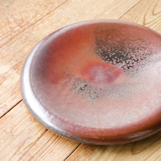 私の中での愛称は赤血球ちゃんですね。この鉄赤は高温で焼き上げる必要があって、発色も一枚一枚変わるので作るのが結構大変ですが、気に入っているお皿です。