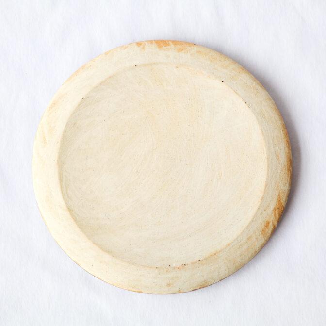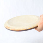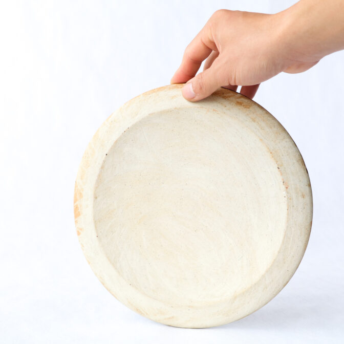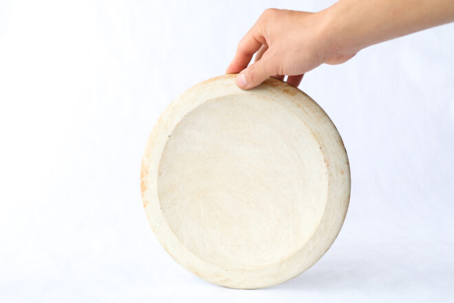 このお皿は土の塊から削り出して形を作っているのでなかなかヘビーなんですけど、肉厚な作りである分、お皿自体を温めておいたらしばらく熱を持っておいてくれるので、重いことは完全にデメリットというわけでもないみたいです。