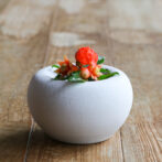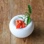 白の器なので色のついた素材はなんでも映えてくれますが、白オン白の場合でも質感の差によって意外と食材が引き立てられると思います。デザートなんかと相性がいい気がしますね。甘い形ですし。